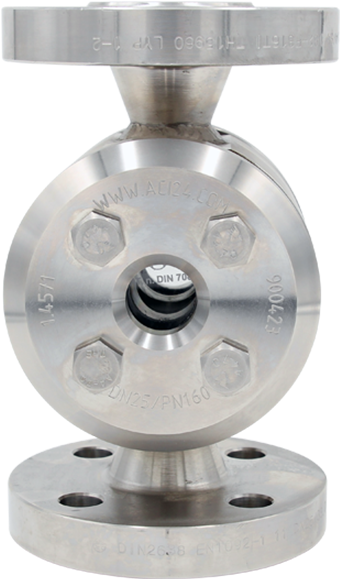 De ACI Hoge druk kijkglazen inline met flenzen PN160 type 520 hebben een massief body dat is gemaakt van verschillende roestvaststalen legeringen zoals 1.4541, 1.4571 of zuurbestendige speciale staalsoorten zoals 1.4539. Afhankelijk van de drukklasse worden flenzen volgens DIN EN 1092-1 gelast en getest binnen het kader van de AD2000-richtlijn. Op verzoek zijn ook andere materialen zoals op nikkel gebaseerde legeringen of Hastelloy voor de hoogste belastingen beschikbaar.