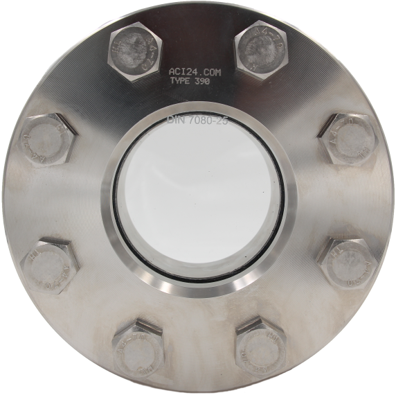 390 Kijkglazen oplas met flenzen PN16, PN25, PN40