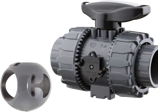 Kunststof doseerkogelkraan met nagenoeg lineaire karakteristiek in 90 graden verdraaiing in de materialen PVC-U, PVC-C, PP-H en PVDF. Deze doseerkraan is ook eenvoudig te automatiseren met een pneumatische of elektrische aandrijving.
