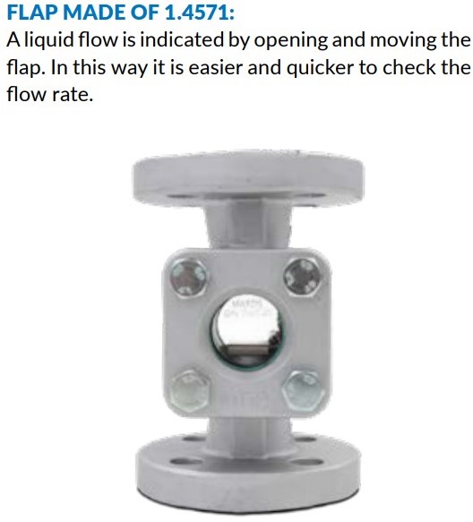 Dit doorstroomkijkglas is voorzien van een rvs stromingsklep. De klep biedt de mogelijkheid om de stroming van zowel heldere als troebele vloeistof te visualiseren.