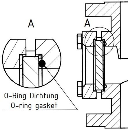 Voor hogere bedrijfstemperaturen of alkalische media is het mogelijk om het kijkglas te voorzien van een extra mica plaatje.