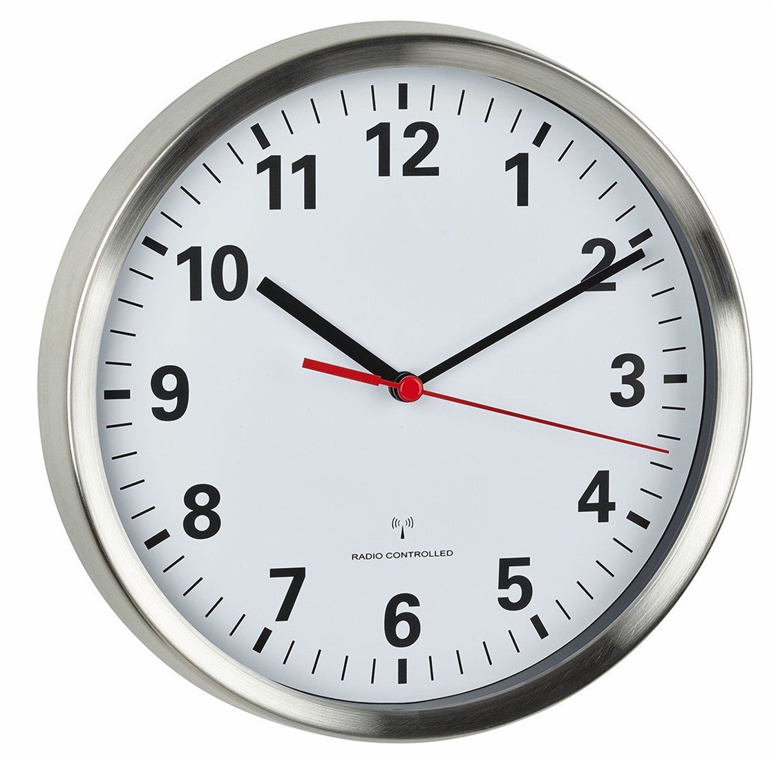 Deze wandklok is een echte klassieker en past in elke interieurstijl. Het frame van geborsteld roestvrij staal en de glazen afdekking benadrukken het hoogwaardige karakter.