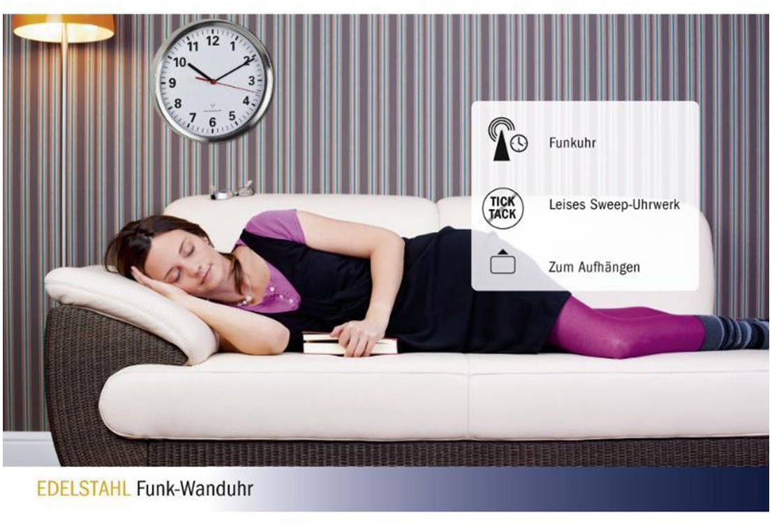 De draadloze wandklok TFA ontvangt de tijd via het DCF 77-signaal. Dit betekent dat de huidige tijd altijd tot op de seconde wordt weergegeven en er niet hoeft te worden omgeschakeld van zomer- naar wintertijd.