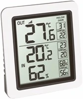 Bewaak tegelijkertijd de buitentemperatuur en het binnenklimaat met de functionele INFO"" draadloze thermometer van TFA.