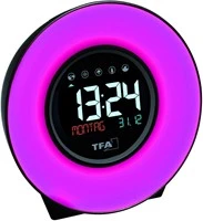 Met de sfeerverlichting creëer je een prettige sfeer in de woon- of slaapkamer. U kunt zeven verschillende kleuren selecteren of een constante kleurwisseling instellen. De lamp is dimbaar en ook geschikt als nachtlampje. Bovendien ziet u elke dag de huidige datum en de volledige dag van de week (selecteerbaar in 4 talen).