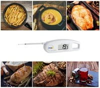 - Bovendien kunnen allerlei soorten voedsel snel, nauwkeurig en moeiteloos worden gemeten met de handige thermometer. Het praktische inklapmechanisme maakt het gemakkelijk te gebruiken. Klap de sonde uit, plaats hem en het apparaat levert binnen zeer korte tijd de exacte temperatuur. Sluit hem na gebruik gewoon weer, hij is uitgeschakeld en voor de volgende keer in je zak opgeborgen.