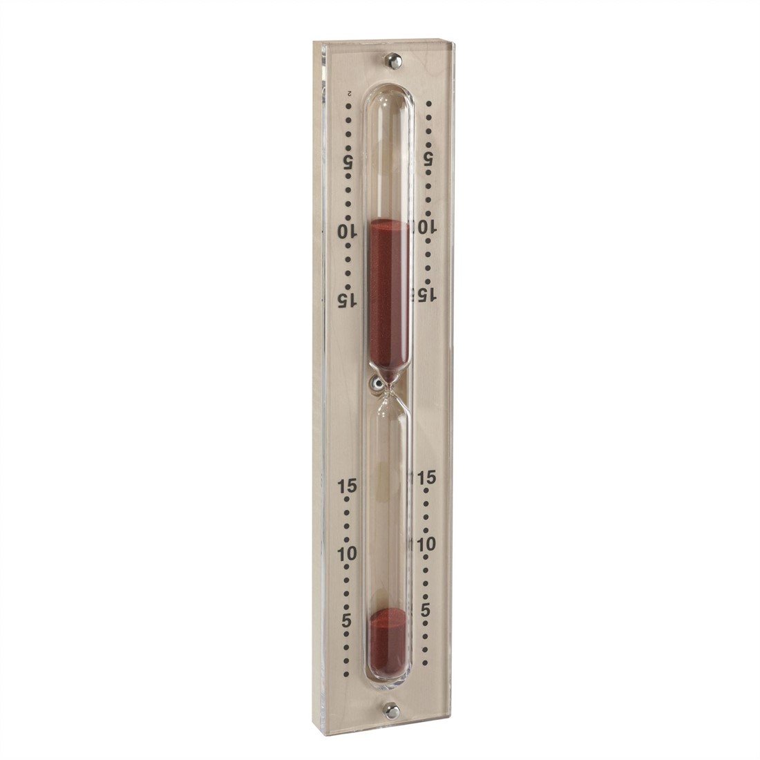 De transparante afdekking over het massief houten frame zorgt voor een bijzondere diepe glans en maakt het materiaal tegelijkertijd hygiënisch en waterafstotend. De schaal met een looptijd van 15 minuten is gemakkelijk af te lezen. Precies het decoratieve en handige accessoire dat ontbrak in uw sauna. Het bevestigingsmateriaal wordt meegeleverd.