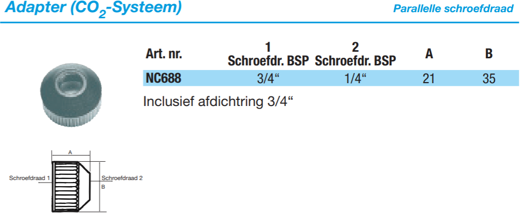 John Guest PM adapter (Co2-Systeem)