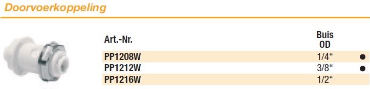 De PP-reeks kunststof koppelingen zijn vervaardigd van wit polypropyleen met EPDM