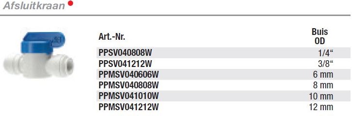 Afsluitkranen van John Guest zijn gemaakt van wit polypropyleen met