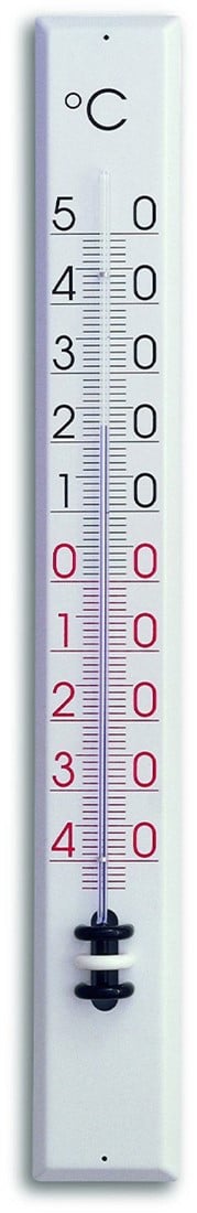 Deze grote gepoedercoate metalen thermometer is zowel binnen als buiten te gebruiken.