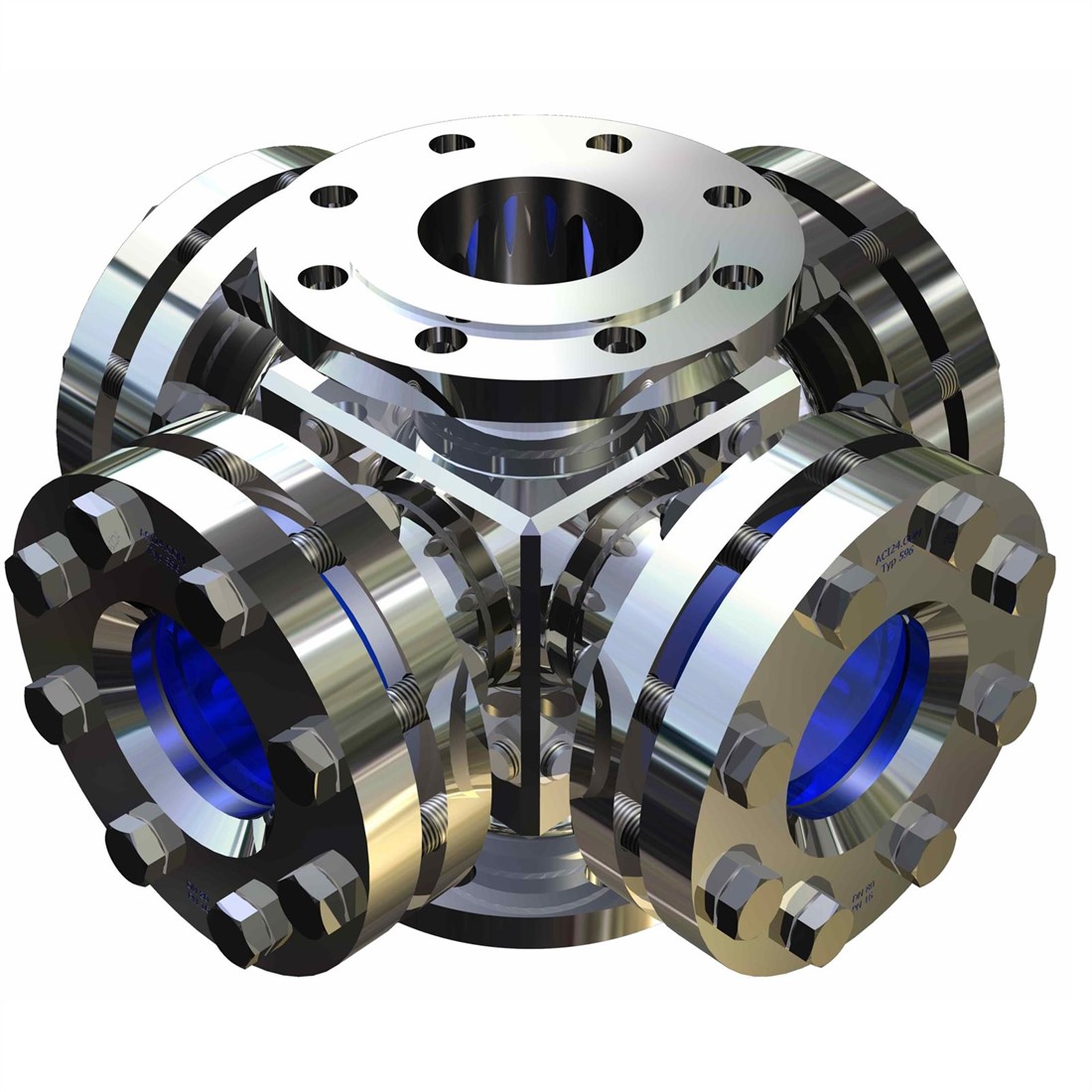 Durchfluss-Schauglas Typ 596 mit vier Sichtöffnungen Ebora