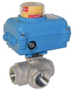 Kogelkraan ZD, 1", met aandrijving NE05, Ed./PTFE, t-bore, 24V DC, looptijd ca. 8sec.