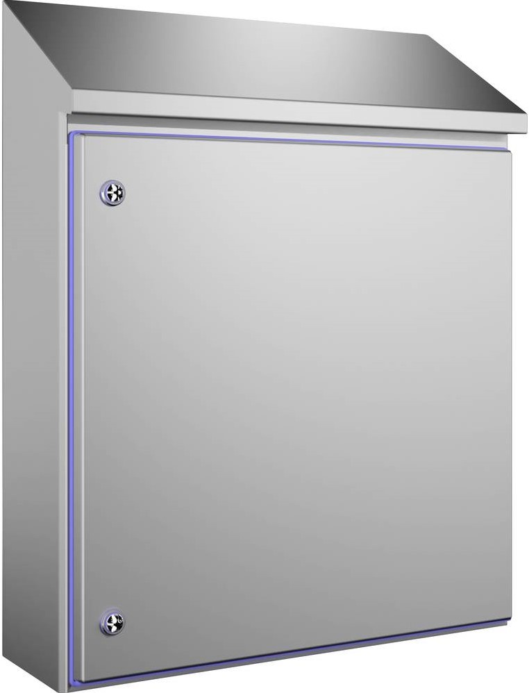Rittal HD Wandkast, roestvaststaal 1.4301 (AISI 304), 390x550/669x210 mm BxH1/H2xD, blauw gekleurde ingeperste afdichting, Food & beverage (F&B) en pharma, 1305600