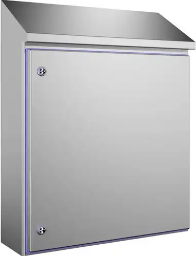 Rittal HD Wandkast, roestvaststaal 1.4301 (AISI 304), 610x650/769x210 mm BxH1/H2xD, blauw gekleurde ingeperste afdichting, Food & beverage (F&B) en pharma, 1310600
