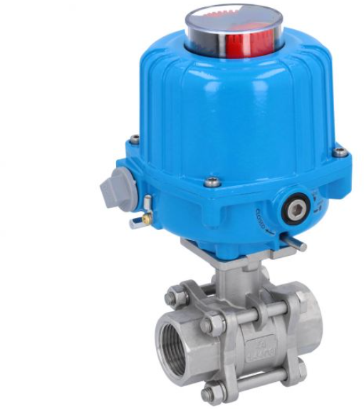 Ebora 3-delige RVS kogelkraan 1 1/4 BSPP, PN63, met aandrijving-NE03, roestvast staal/PTFE-FKM, 230V 50Hz, looptijd 12sec. EBQC1826-NE034100