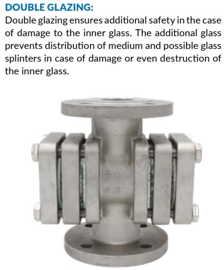 Voor verhoogde bedrijfstemperaturen of alkalische media is het mogelijk om het kijkglas te voorzien van een extra mica beschermingslaag.