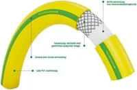Meerlaagse kunststof PVC-waterslang versterkt met polyester inlage, met vierde laag, speciale knik bestendige inlage, speciaal voor tuinieren en levensmiddelen gebruik.