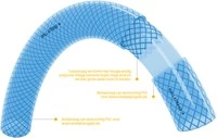 Meerlaagse, doorzichtige kunststof PVC-slang, versterkt met polyester inlage, geschikt voor de doorvoer van vloeibaar voedsel.