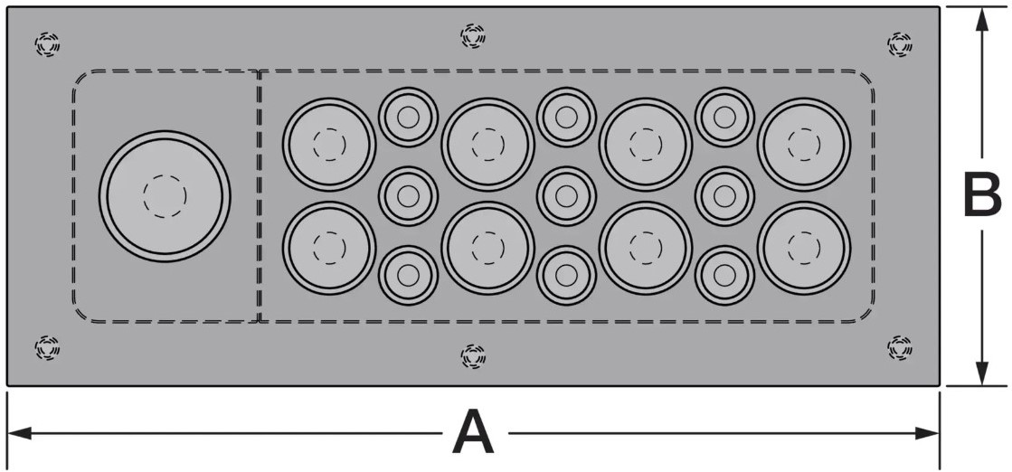 RVS/EPDM kabeldoorvoerplaat met 18 kabeldoorvoeren: