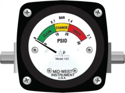Model 522 - Membraandrukverschilmeter. ASME B40.100 Grade D Nauwkeurigheid +/- 5% volle schaal. (Oplopend),