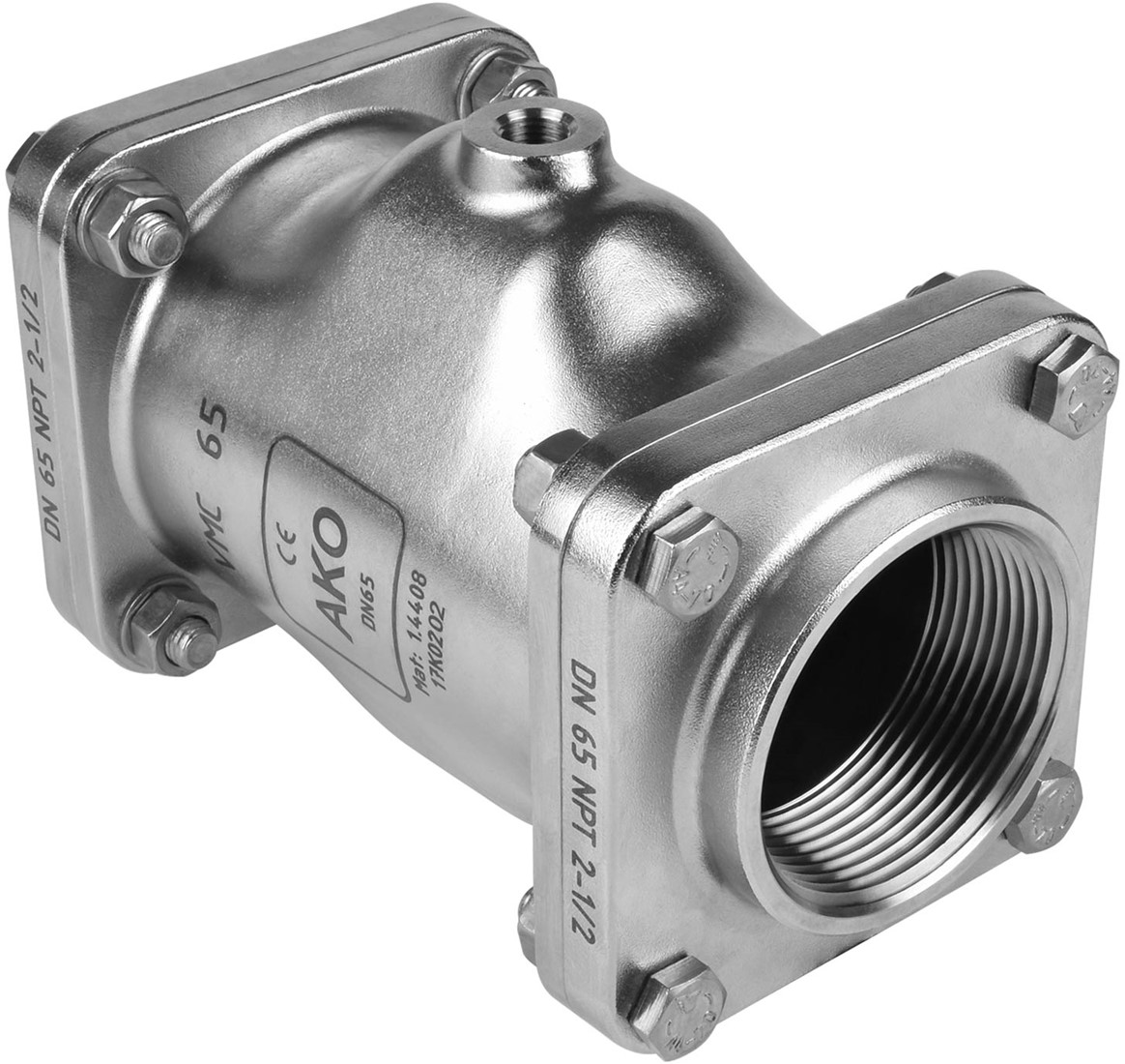 AKO Armaturen Lucht bediende slangafsluiter VMC, binnendraad (ANSI / ASME) RVS 1.4408/Nitrile (food) DN 65, VMC65.07LS.50N.50