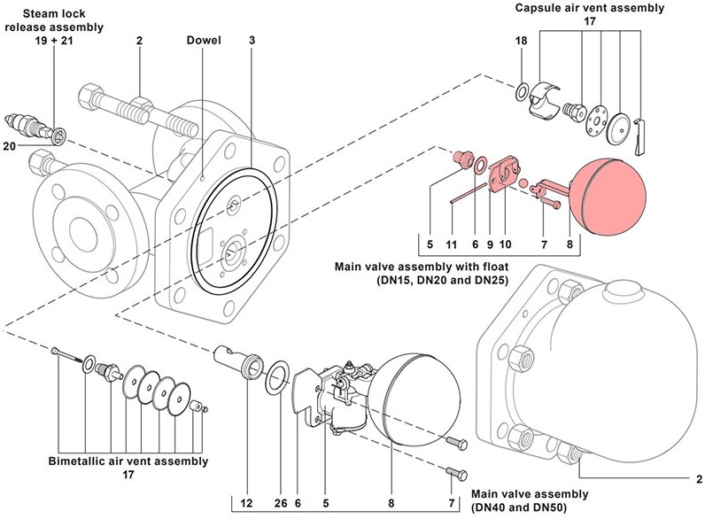 Spirax Sarco Klep/vlotter 4, 5BAR FT20/44/47 FT46/CA46S DN25, 624080