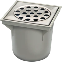 Emmerput met een ABS puthuis en RVS rooster 200 x 200 mm, belastbaar tot 250 kg.