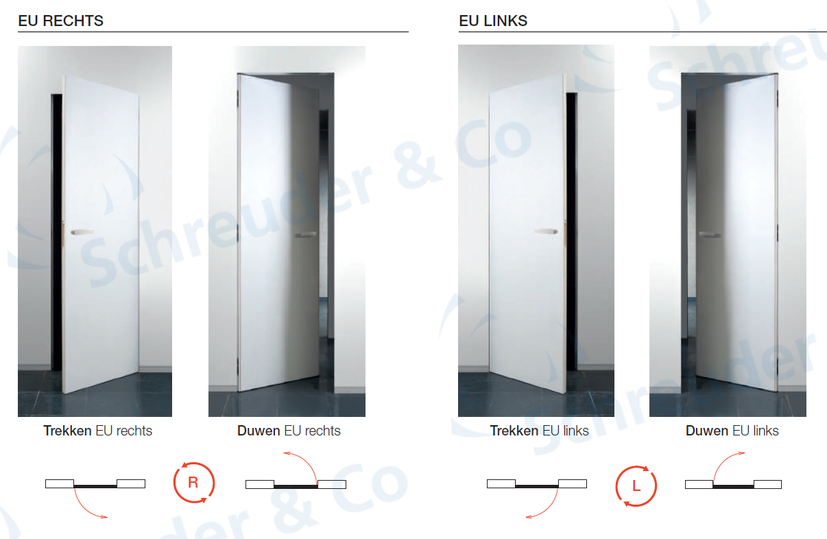 Let op: Bij het bepalen van de draairichting sta je bij duwdeuren dus niet aan de vlakke kant.