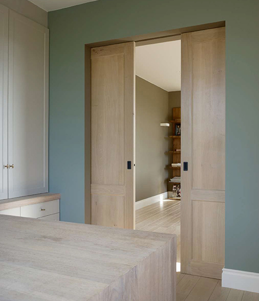 Een schuifdeur in de wand schuift, zoals de naam al doet vermoeden, in de wand. We hebben hier complete pakketten voor waarmee ook het stukje holle wand kan worden opgebouwd waar de schuifdeur in zal schuiven. Deze holle wand kan naadloos worden aangesloten op een bestaande metalstud of HSB wand met een dikte van minimaal 100 mm. Een schuifdeur in de wand is prachtig, maar wel meer werk om te plaatsen dan een schuifdeur die je tegen de wand hangt. Er zal een grote sparing in de wand gemaakt moeten worden, en de hele wand zal na het plaatsen van de schuifdeur afgewerkt moeten worden met bijvoorbeeld stucwerk.
