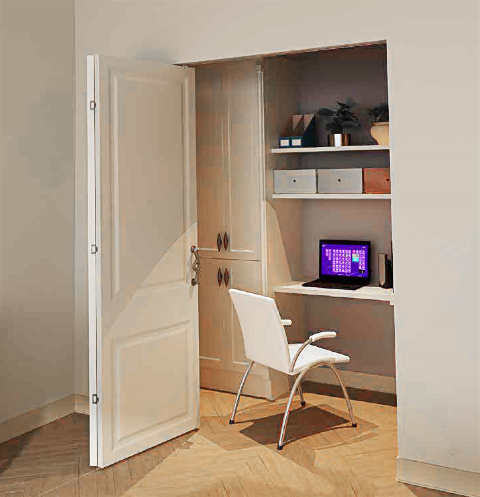 Een onzichtbaar schuifdeursysteem lijkt wel trucage! De deur zweeft heen en weer voor de wand zonder dat de techniek erachter te zien is. De deuren hebben geen onder geleiding, waardoor ze op elke hoogte tegen de wand kunnen worden opgehangen. De mogelijkheden zijn eindeloos! Verberg een kast of maak een zwevende deur naar je woonkamer. Voorwaarde voor een onzichtbaar schuifdeursysteem is dat de deur niet zwaarder mag zijn dan 50 kg. Ook moet de deur een stuk breder zijn dan de opening in de wand, om het frame van het schuifdeursysteem te kunnen verbergen.