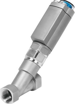 Bei den VZXA-Schrägsitzventilen handelt es sich um fremdgesteuerte Ventile, die durch direkte Drucklufteinspeisung gesteuert werden und zum Absperren von gasförmigen oder flüssigen Medien in Rohrleitungssystemen dienen. Dabei wird eine Spindel mit einem weichdichtenden Ventilteller mit Hilfe eines pneumatischen Aktuators angehoben und abgesenkt. In allen obigen Ausführungen ist der Ventilsitz in einem Winkel von etwa 40 ° in der Richtung der Fluidströmung geneigt. Die Strömungsrichtung wird durch die Auslegung des Ventils (Prozessventil und Stellglied) bestimmt.