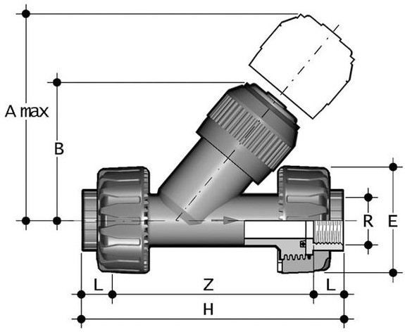 Materiaal: PVC Werkdruk tot PN16 met 20 C Afmeting: DN15..DN50 (1/2"..2") Procesaansluiting: Union, binnendraad, flenzen of lijmeinden