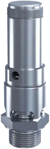 Unser kleinstes und kompaktestes atmosphärisches Sicherheitsventil, vollständig aus Edelstahl (RVS) mit einer RVS-Feder.