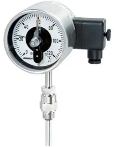 Beschreibung:Die Aufgabe der Grenzsignalgeber besteht darin, Stromkreise durch einen mit dem Istwertzeiger bewegten Kontaktarm zu schließen oder zu öffnen. Die Einstellung des Sollwertzeigers erfolgt von außen durch einen abziehbaren Schlüssel auf den Wert, bei dem der Schaltvorgang erfolgen soll. Der Sollwertzeiger kann über den gesamten Skalenbereich flexibel verstellt werden.