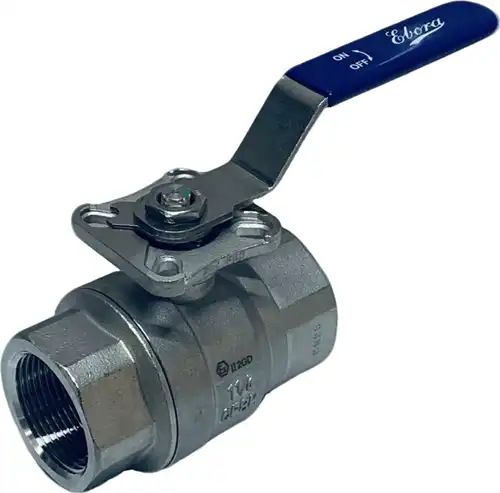 Ebora 2-teilige Edelstahl Kugelhahn 1 1/4 BSPP, PN63 mit Aufbauflansch ISO5211 F04/F05, Quadrat 9 mm, mit Handhebel QB18-31126