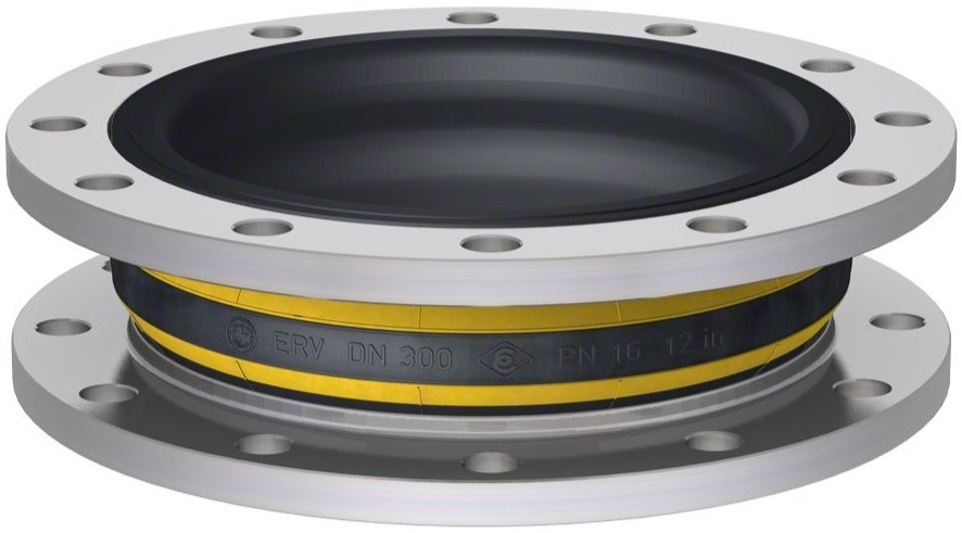 Elaflex Gummikompensatoren Gelbstahl Typ ERV-GS DN300, L=130 mm Flansche DIN PN16 Stahl verzinkt