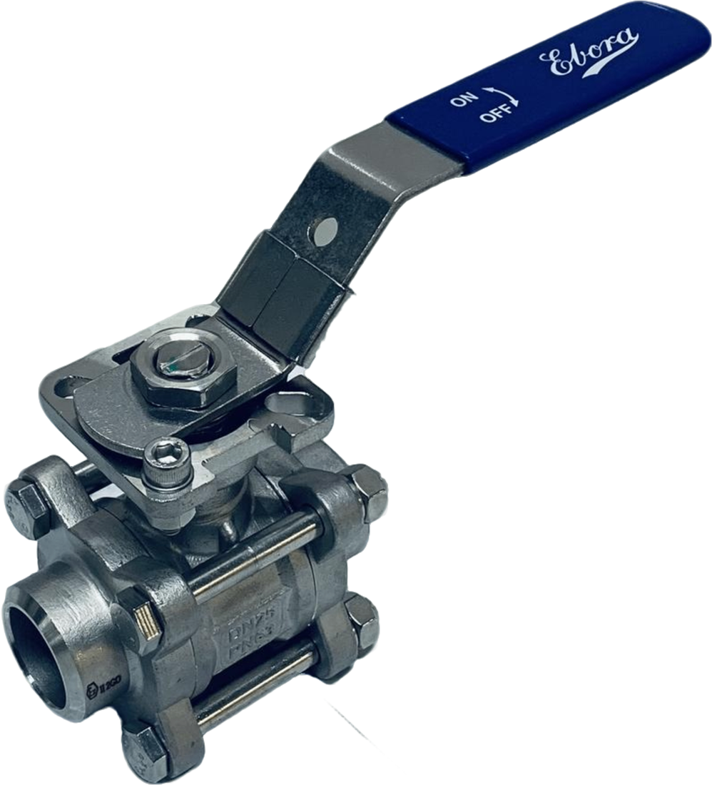 3-teiliges Edelstahl-Kugelhahn DN25 BW-Schweißenden PN63 mit Aufbauflansch ISO5211 F04/F05, quadratisch 11 mm, mit Hebel, QC18-31164