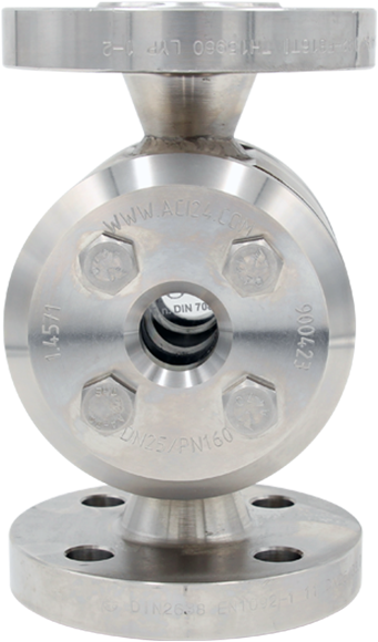 Die ACI Hochdruck-Durchflussschauglasarmaturen Typ 520A besitzen ein massives Gehäuse, das aus verschiedensten Materialien angefertigt wird, angefangen von warmfestem Baustahl P250GH (1.0460) über nicht rostende Stähle wie 1.4541, 1.4571 oder säurebeständige Sonderstähle wie 1.4539. Entsprechend der Druckstufe werden Flanschen gemäß ASME B16.5 angeschweißt und im Rahmen der AD2000 Richtlinie geprüft. Auf Wunsch sind auch andere Materialien wie Nickelbasislegierungen oder Hastelloy für höchste Beanspruchung lieferbar. Die Armaturen werden üblicherweise mit zwei Sichtfenstern gefertigt, wodurch eine Beobachtung der Prozesse von zwei Seiten bzw. eine Durchleuchtung des Prozessmediums möglich ist.