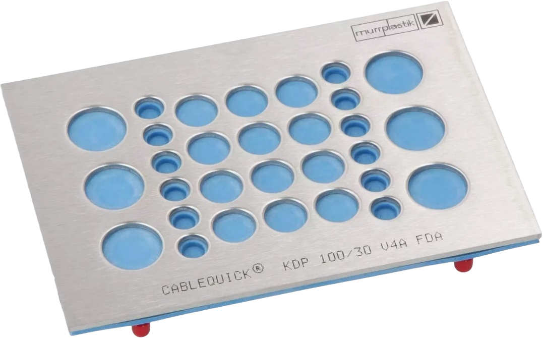 MurrPlastik RVS/EPDM Kabeldurchführungsplatte mit 18 Kabeldurchführungen 145 x 100 mm, 87663958 cablequick ® KDP 100/18, V4A FDA