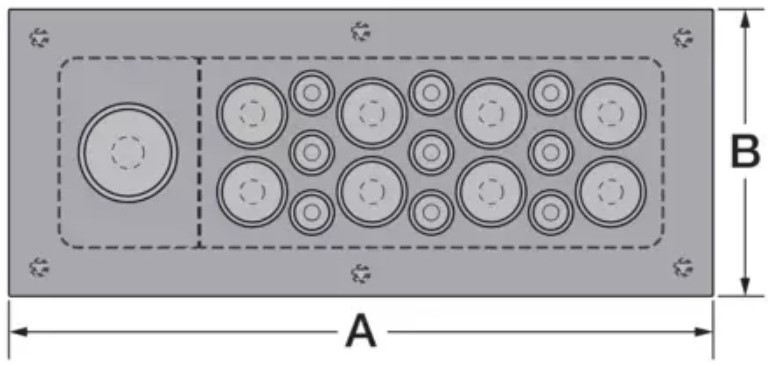 RVS/EPDM-Kabeleinführungsplatte mit 14 Kabeleinführungen: