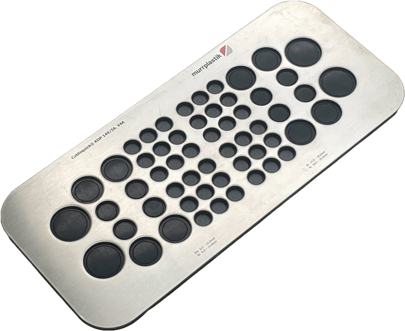MurrPlastik RVS/NBR Kabeldurchführungsplatte mit 56 Kabeldurchführungen für Rittal Kabelverschraubungsplatte 4, 87663086 cablequick ® KDP 149/56, V4A