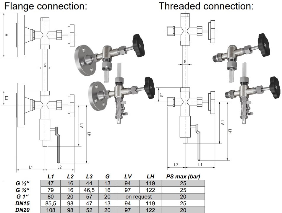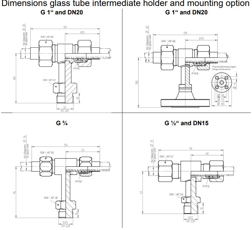 Buis niveau indicator voor vloeistoffen Afsluiters: 1.4571