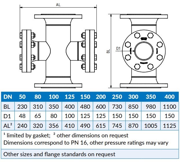 Doorstroomkijkglas Aansluitmaat: DN50 Flens PN40