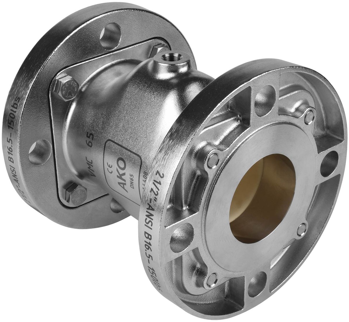 AKO Armaturen Pneumatisches Quetschventil VMC, Flansch (ANSI) Edelstahl 1.4408/Natrlich gummi (lebensmittel, bleich) DN 65, VMC65.02X.50FA.50