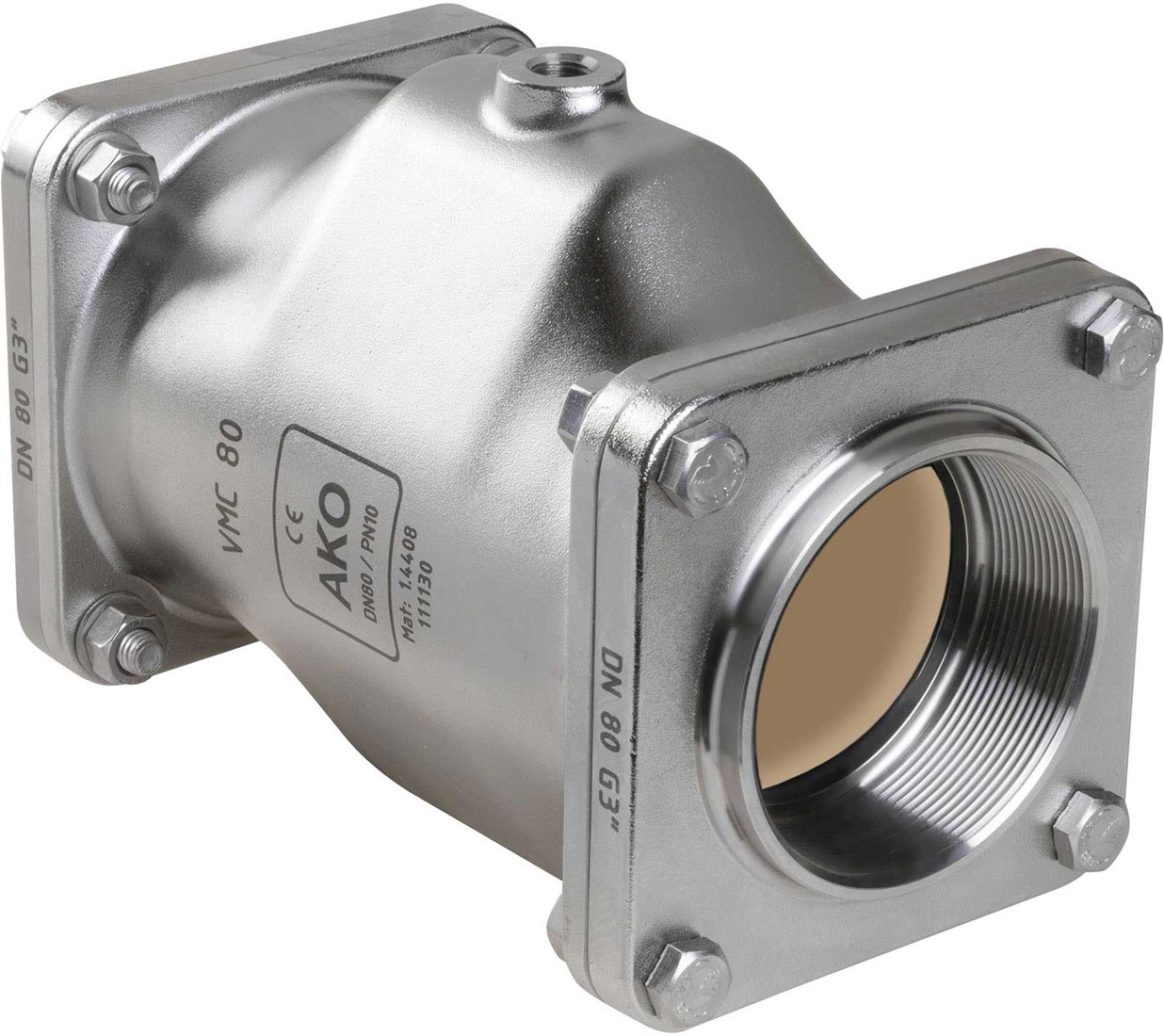 AKO Armaturen Pneumatisches Quetschventil VMC, Innengewinde (DIN) Edelstahl 1.4408/Natrlich gummi (lebensmittel, bleich) DN 80, VMC80.02X.50G.50