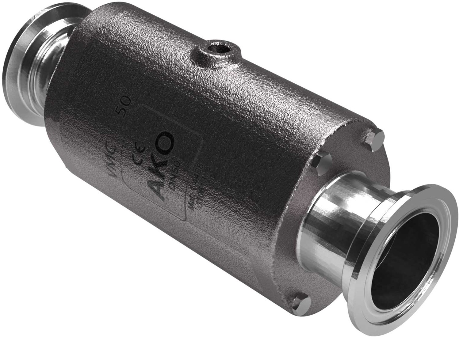AKO Armaturen Pneumatisches Quetschventil VMC, Hyg. Klemmstutzen (DIN) Edelstahl 1.4408/Viton DN 50, VMC50.05.50RT.50