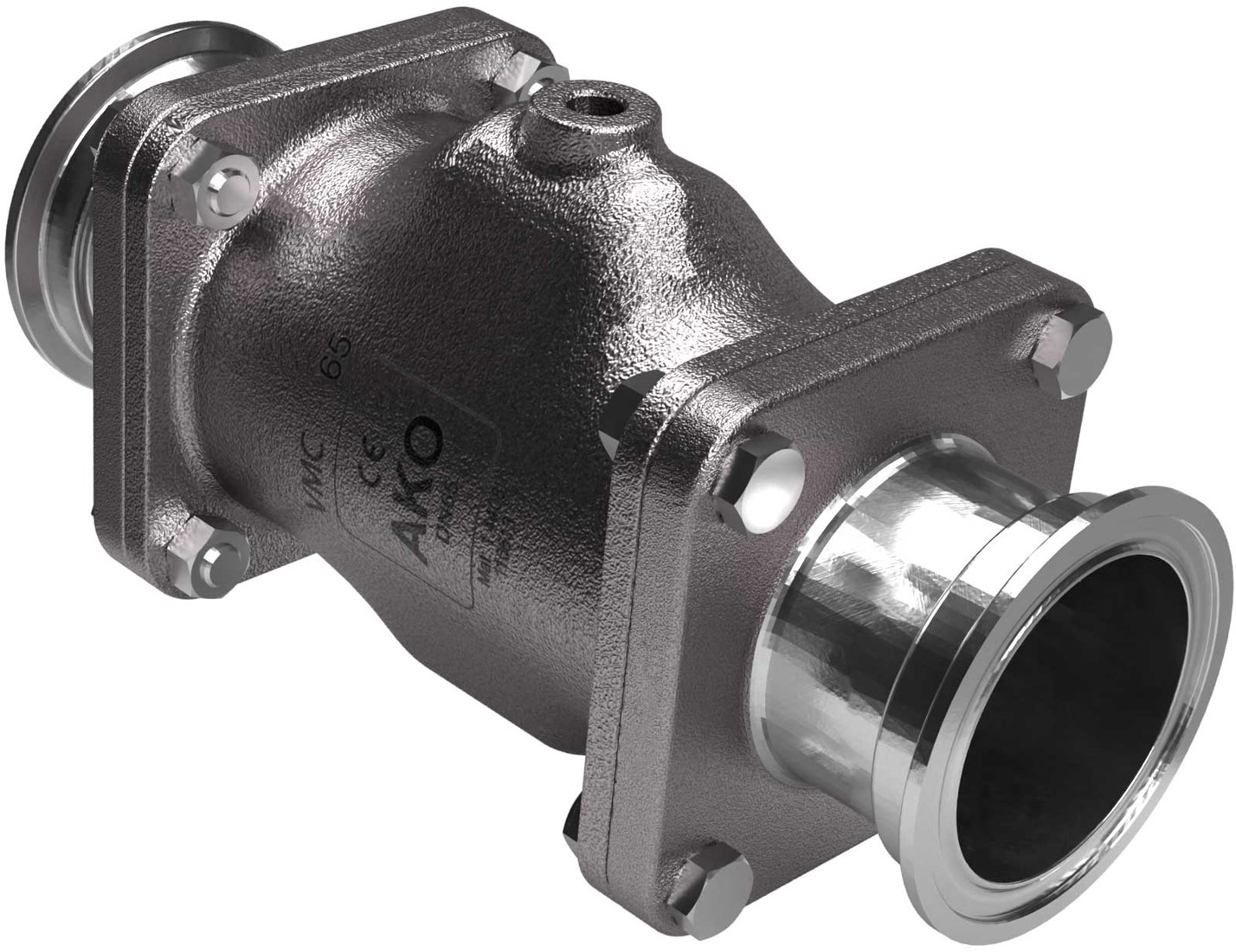 AKO Armaturen Pneumatisches Quetschventil VMC, Hyg. Klemmstutzen (DIN) Edelstahl 1.4408/EPDM DN 65, VMC65.04HTEC.50RT.50