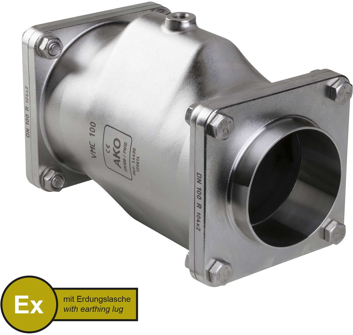 AKO Armaturen Pneumatisches Quetschventil VMC, Anschweienden (DIN) Edelstahl 1.4408/Nitrile (cond.) DN 100, VMCX100.07LF.50R.50
