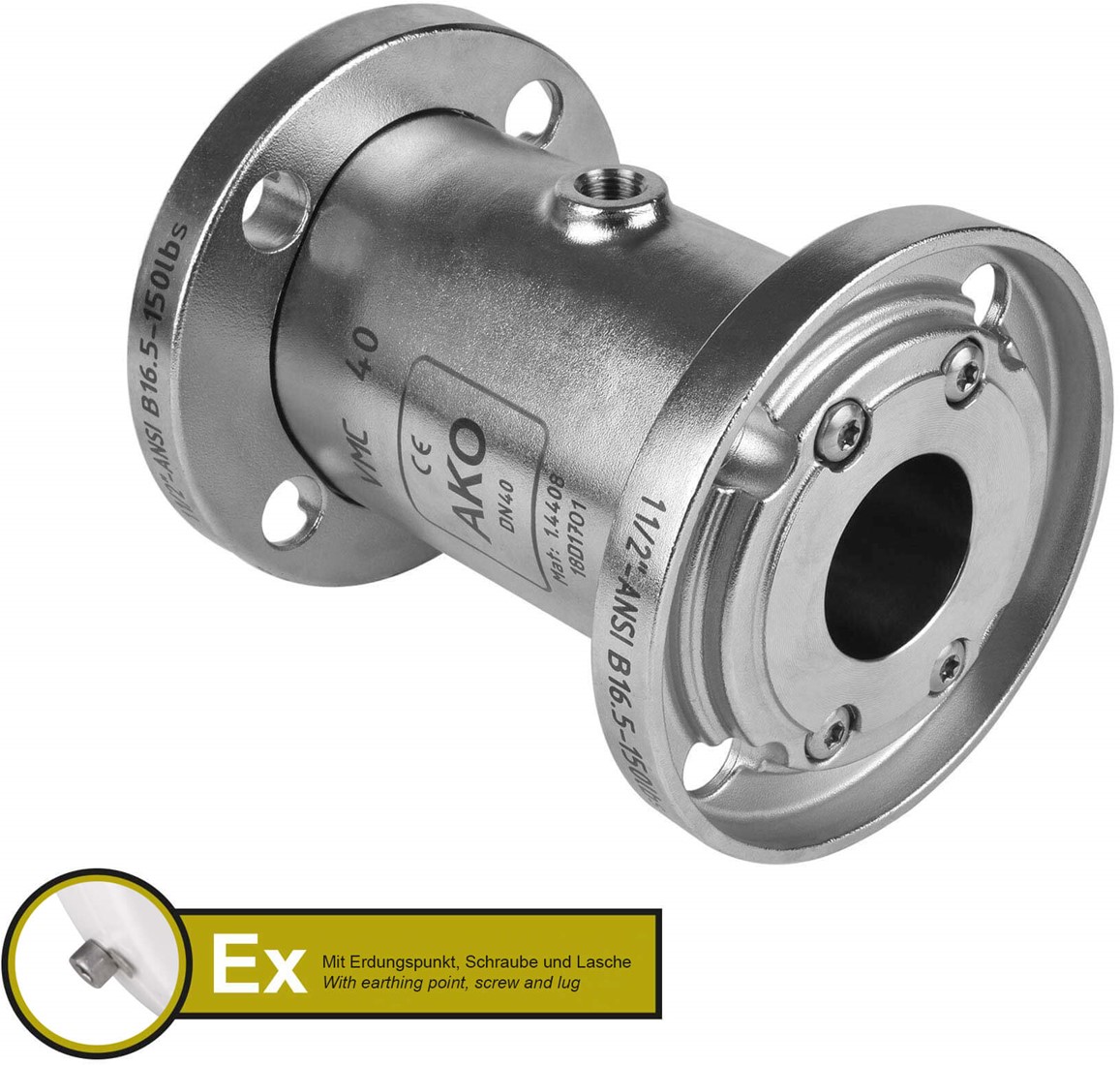AKO Armaturen Pneumatisches Quetschventil VMC, Flansch (ANSI) Edelstahl 1.4408/Natrlich gummi (cond.) DN 40, VMCX40.03LF.50FA.50